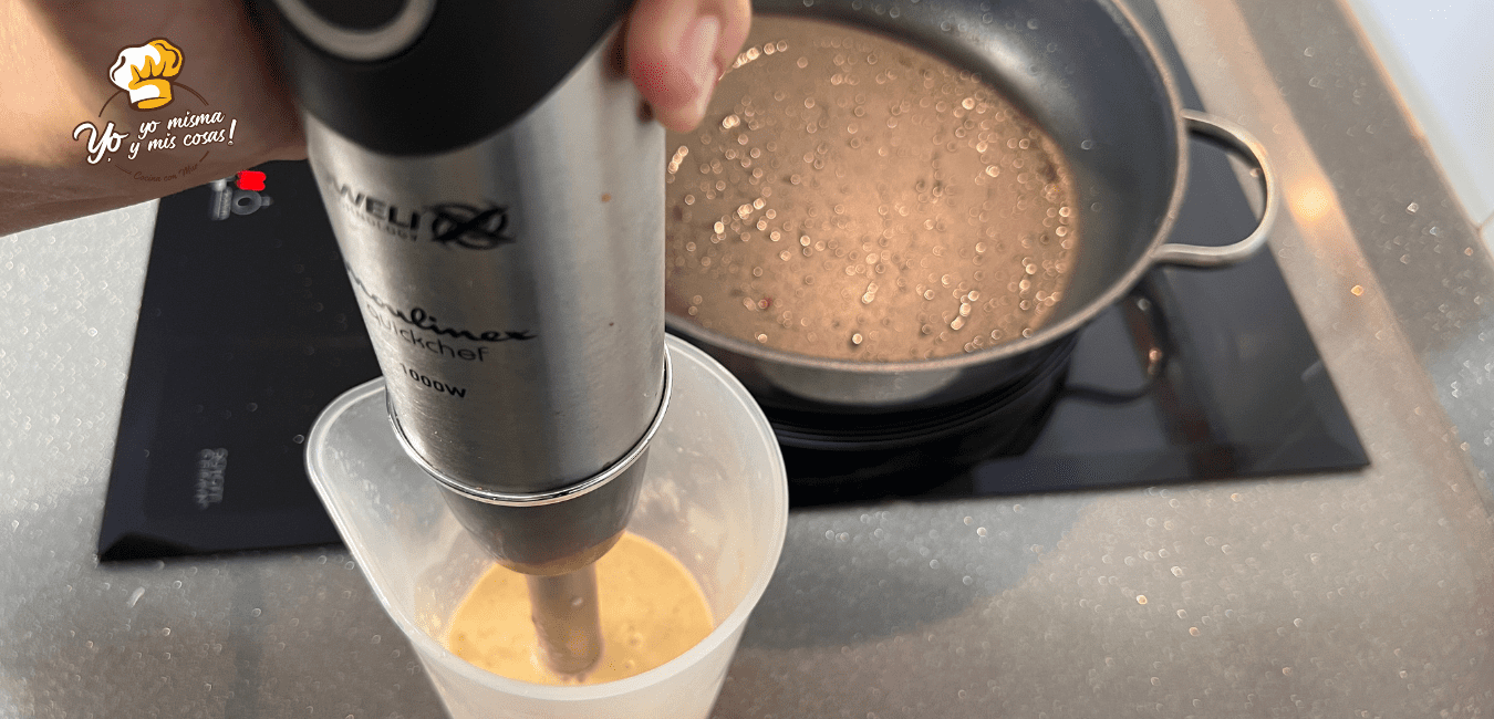 Cuando esté doradito y pochadito, retiramos y trituramos con un poco de caldo o de agua.