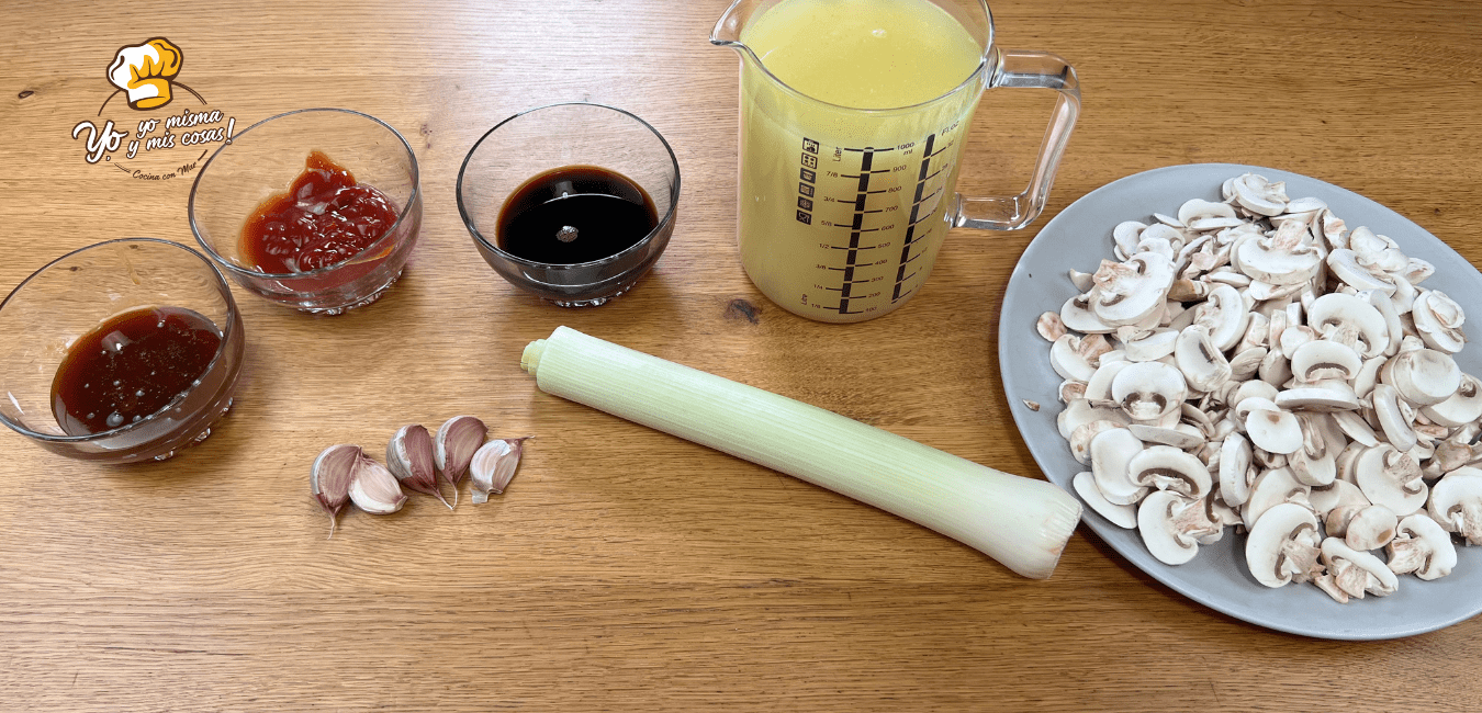 - Caldo de carne, aproximadamente un litro, he usado caldo de pollo