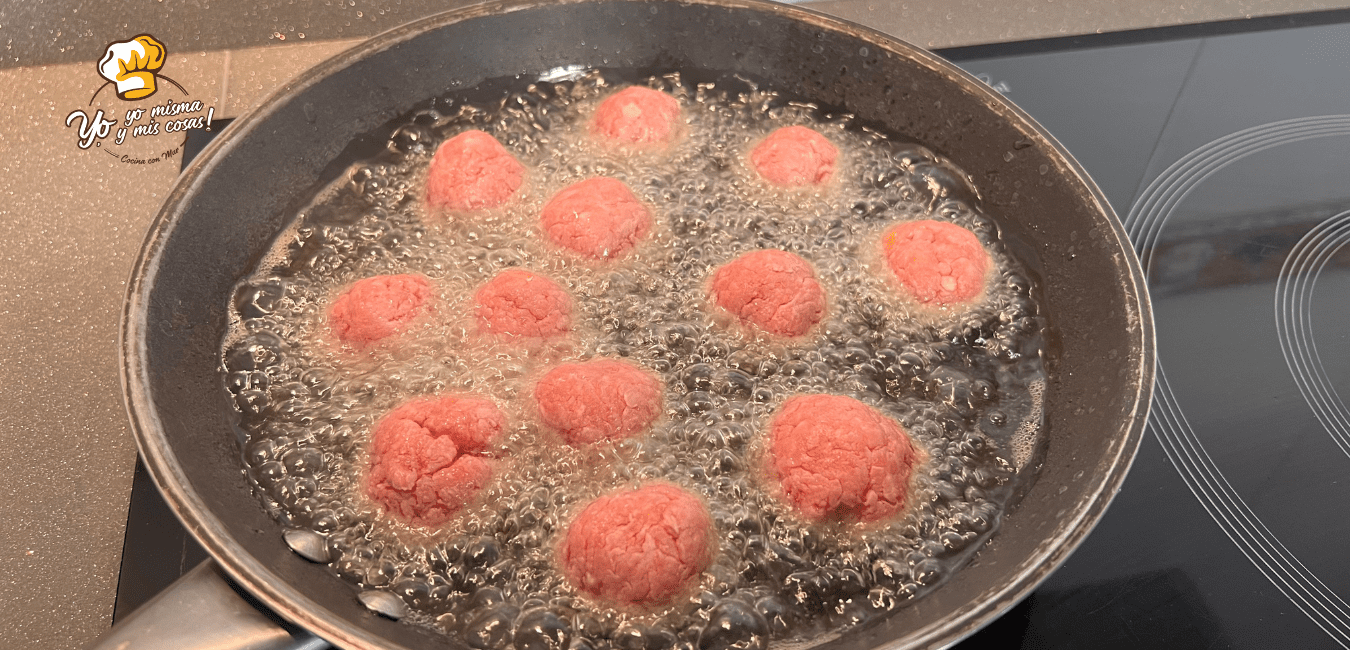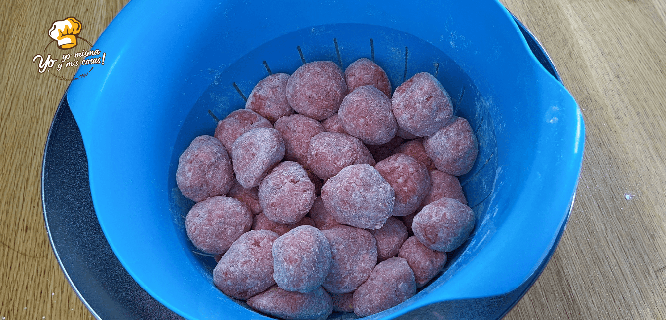 Formamos las albóndigas y pasamos levemente por la harina o maicena.