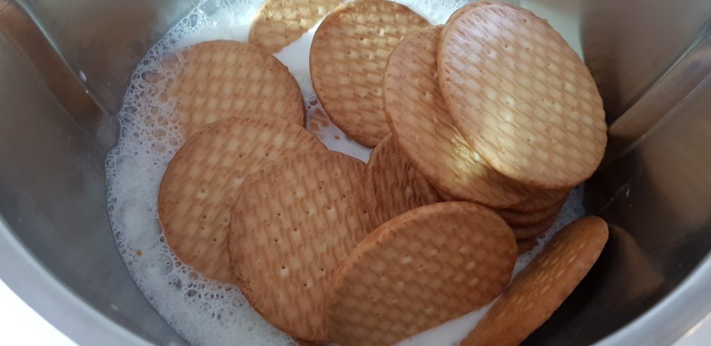 Aquí os dejo la receta del pudin de galletas para que veáis la diferencia al utilizar un recipiente más alto. Queda diferente en textura, menos densa y el sabor es muy parecido. Os dejo su enlace por si queréis echarle un vistazo.