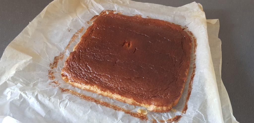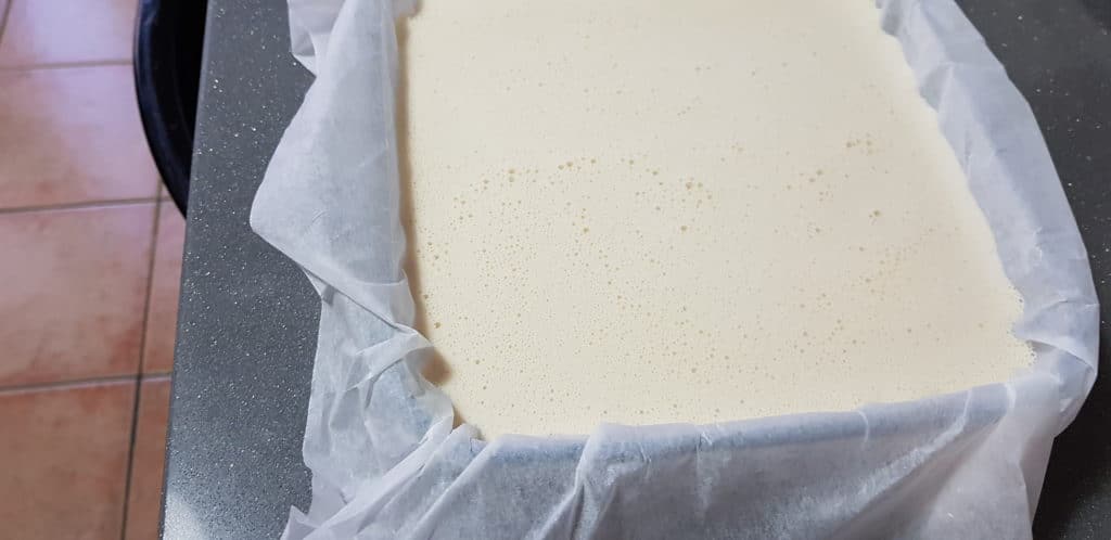 En el recipiente ponemos papel de hornear y vertemos el líquido obtenido.