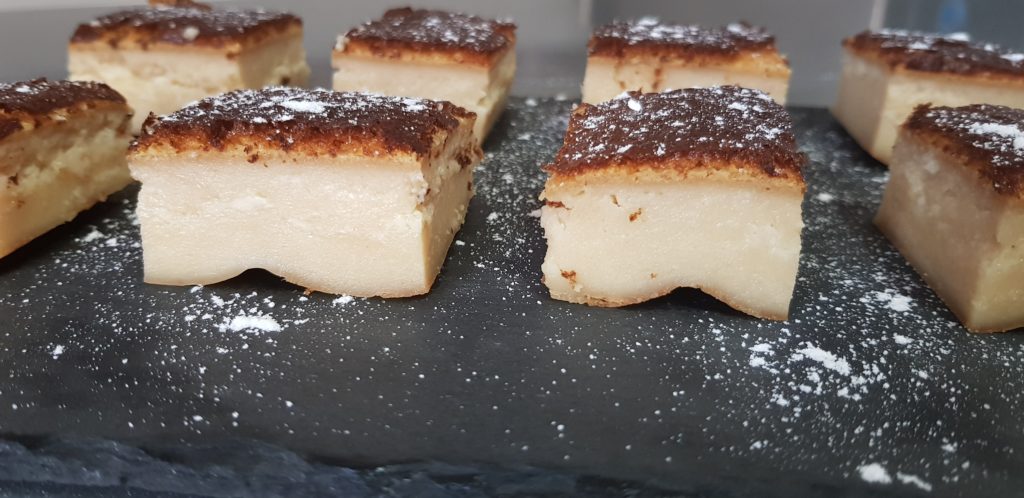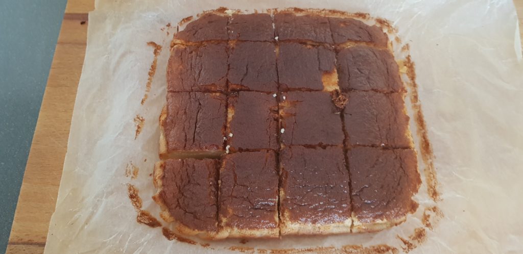 Sacamos nuestro pastel y dejamos enfriar. Una vez que esté frío cortamos en cuadrados y espolvoreamos azúcar glas por encima si queréis. También sirope de chocolate le va genial.