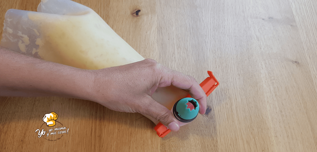 Vamos a echar en una manga pastelera el puré de las patatas. Con una boquilla rizada ancha