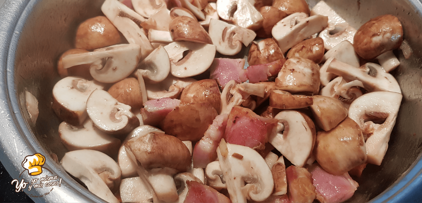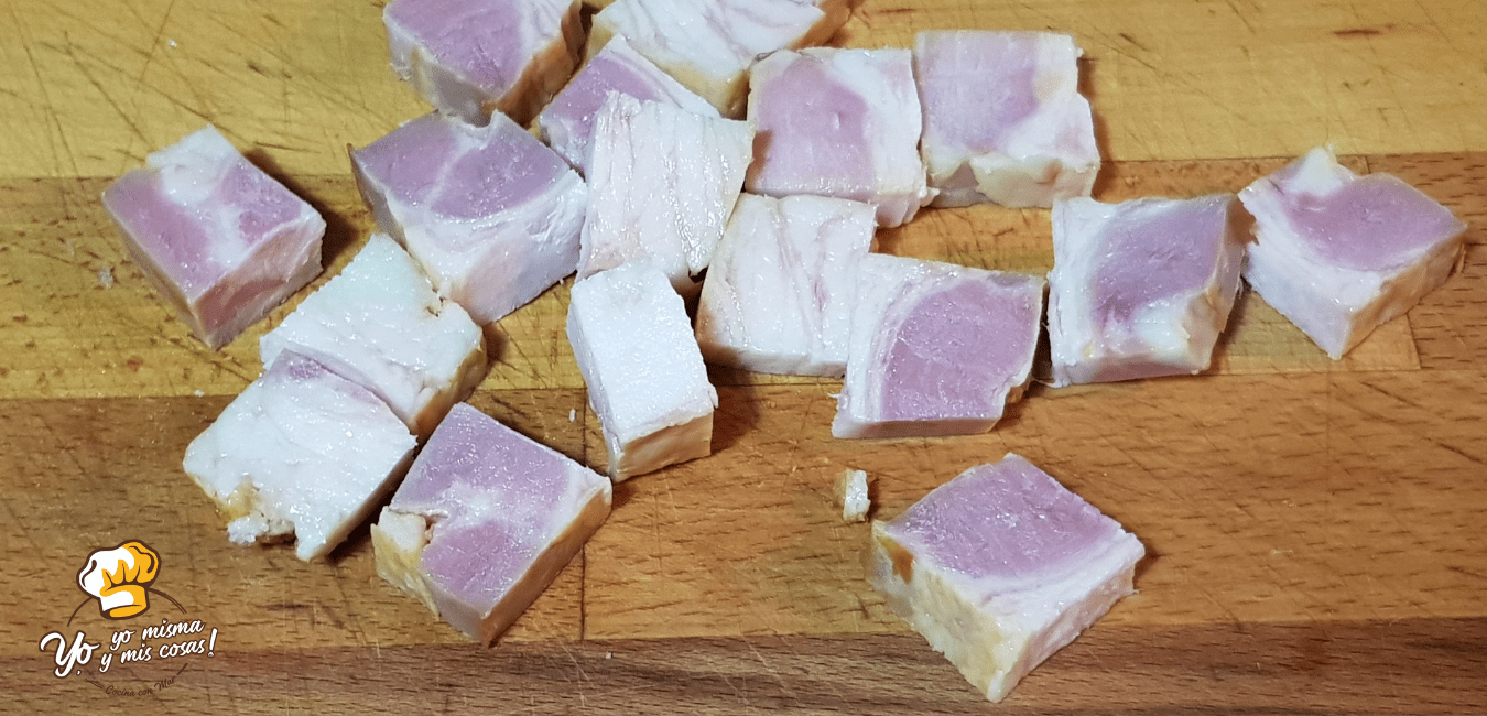 Troceamos el Bacon y doramos en un poco de aceite en la misma sartén u olla que estamos utilizando.