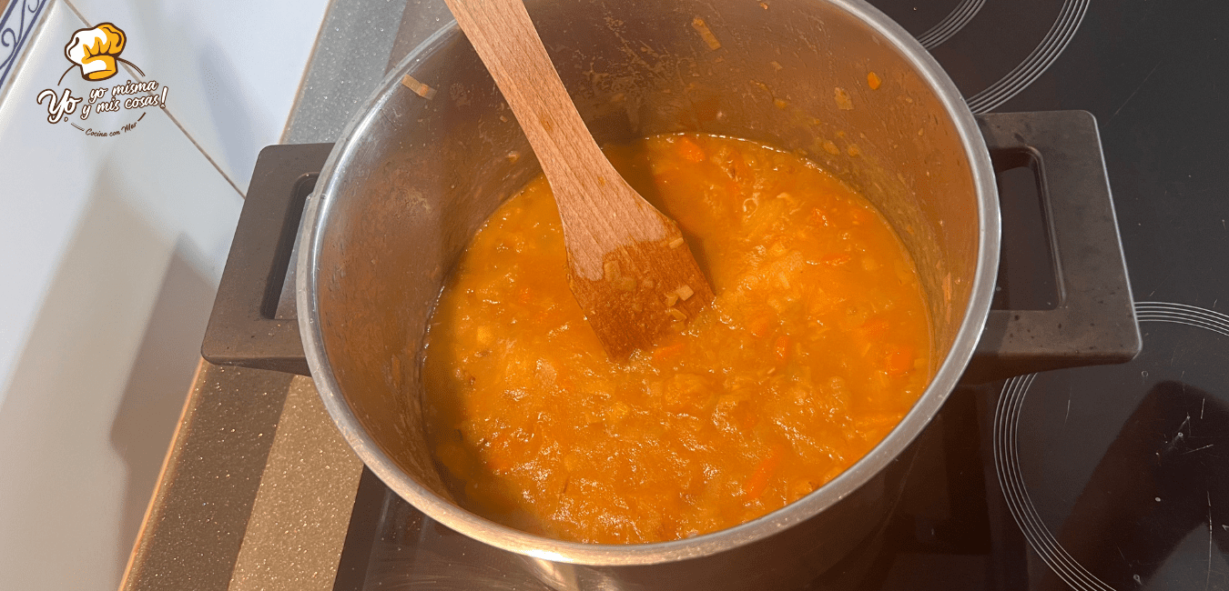 Seguimos cocinando a fuego medio, numero 6 de mi placa de inducción que es del 1 al 9, durante unos 20 minutos. Mezclando de cuando en cuando.
