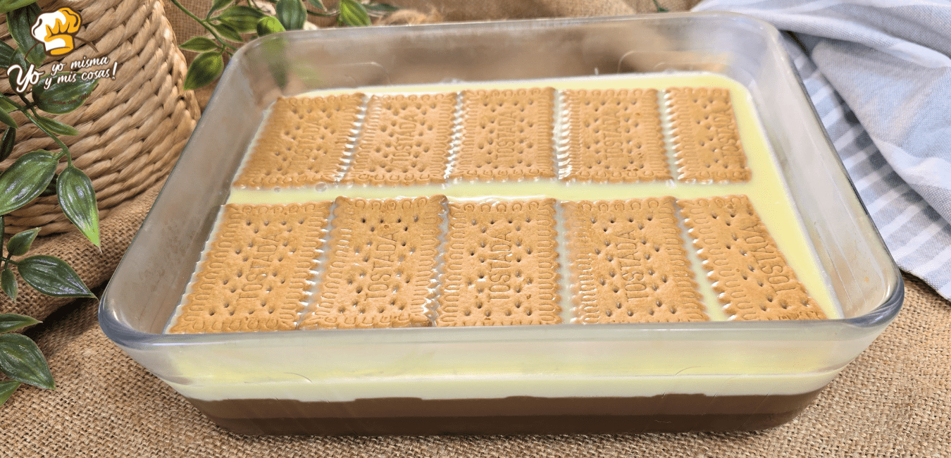 Y finalizamos con otra capa de galletas mojadas en la leche aromatizada.