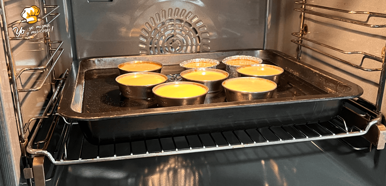 Vamos a poner el horno a precalentar a 200 grados centígrados con un recipiente con agua en su interior para preparar el flan de vainilla al baño maria.