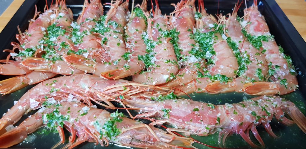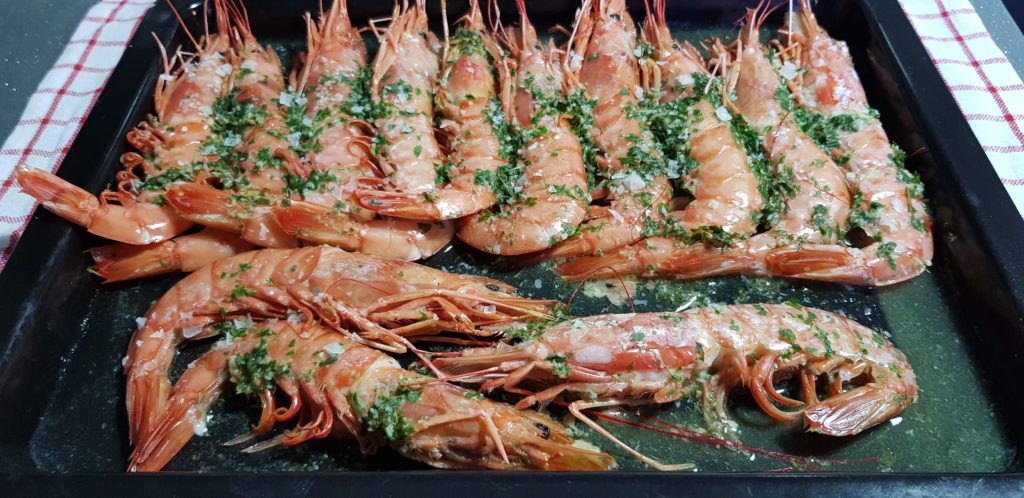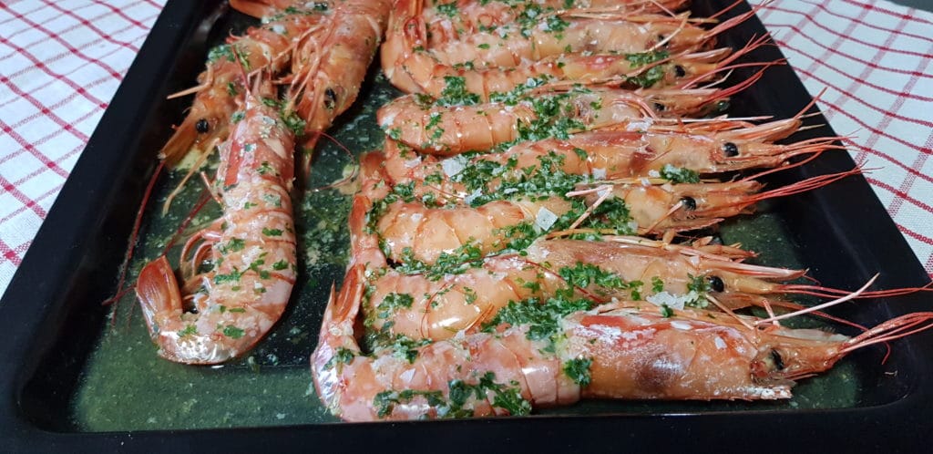 A disfrutar de estos gambones asados en el horno. Super jugosos y muy ricos.