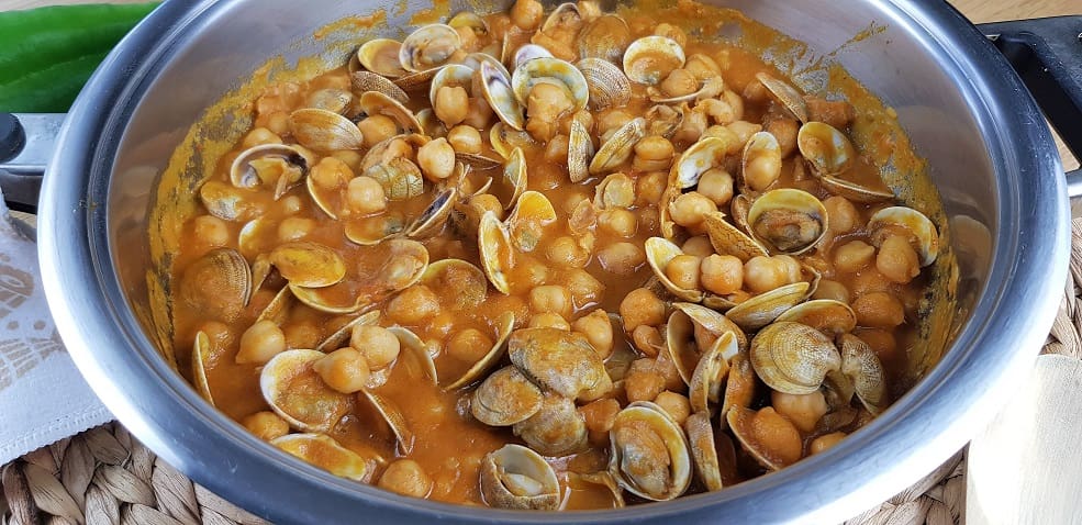 Y ya tenemos nuestros garbanzos con almejas terminados. Una receta con legumbres que podéis cocinar tanto en verano con calor como en invierno con el frío.