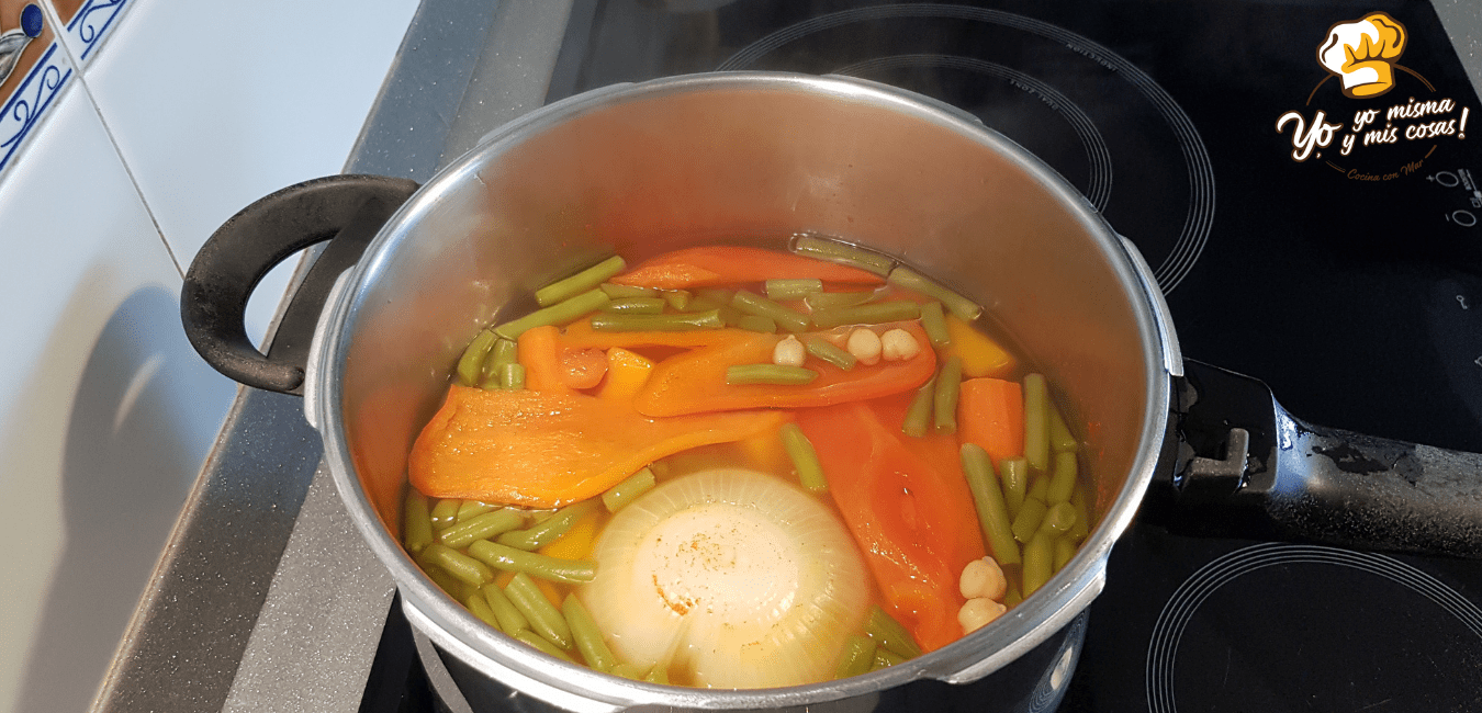 - Olla rápida 20 minutos desde que comience a soltar el vapor a un fuego medio. Cuando trituremos la verdura 15 minutos mas