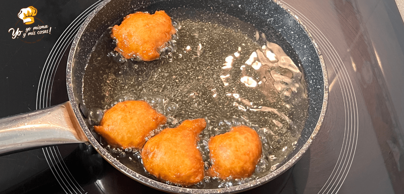 Colocamos una sartén al fuego con abundante aceite a calentar. Echamos una pizca de la masa, que nos indicará cuando esta perfecto el aceite para empezar.