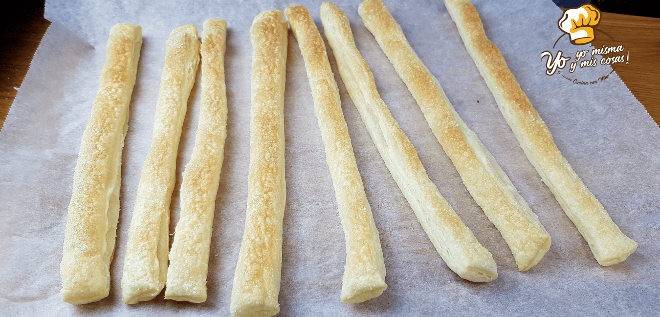 Los sacamos los palitos de hojaldre del honro una vez estén dorados y listos.