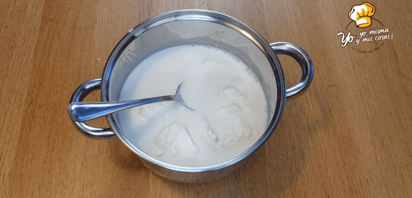 Mientras se hornea el hojaldre vamos a preparar parte de la crema de queso.