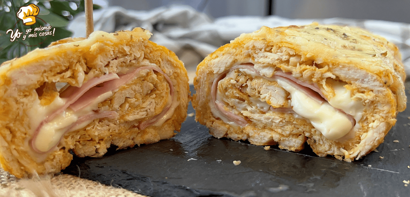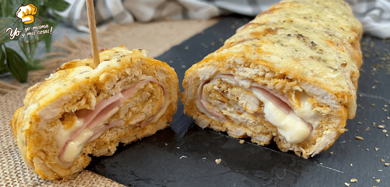 Es una receta de enrollado de pollo que puedes comer tanto en caliente como fría. Deliciosa.