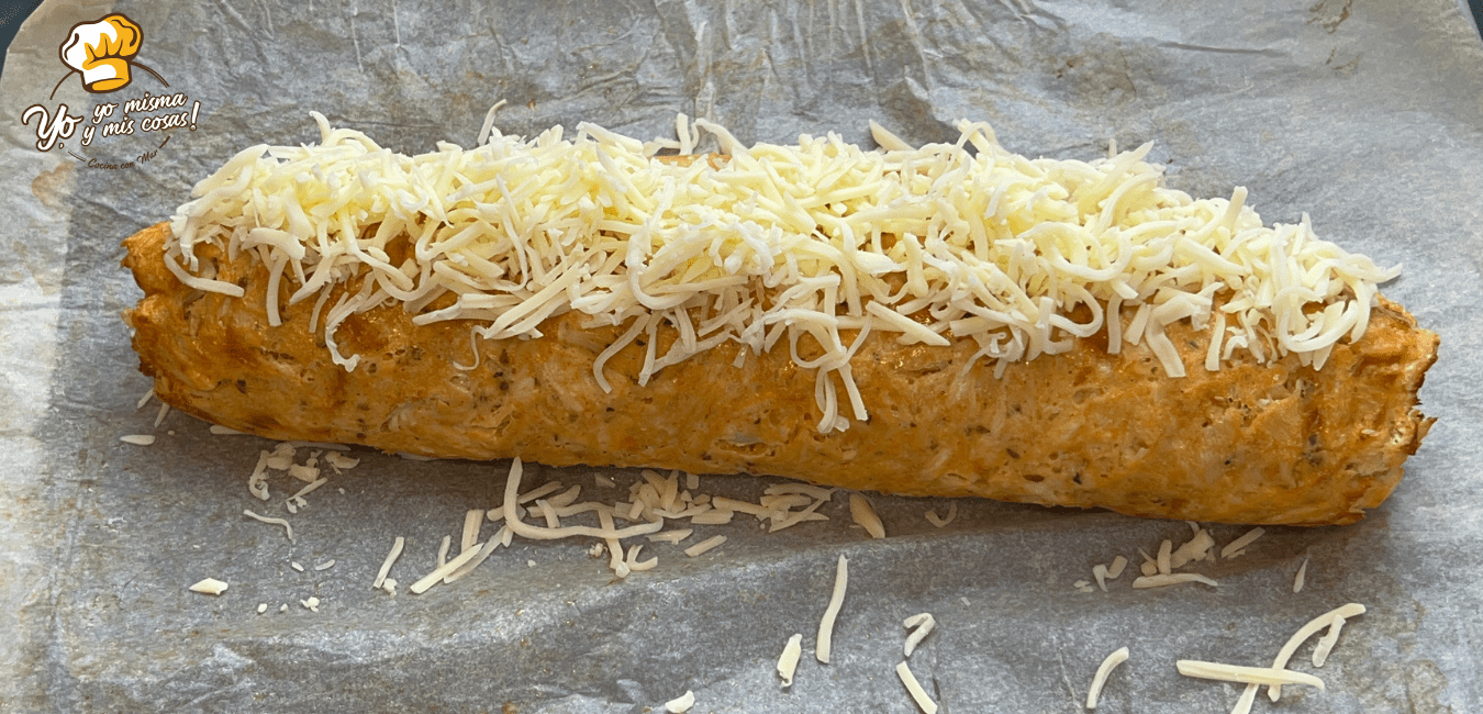 Colocamos encima del rollo de pollo queso rallado al gusto y un poco de orégano.
