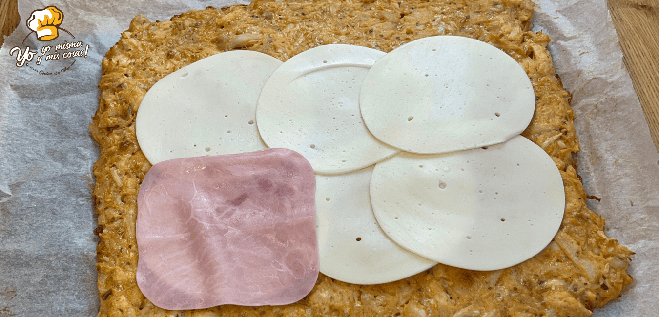 De seguida encima otra capa de jamón cocido y para finalizar un poco mas de queso.