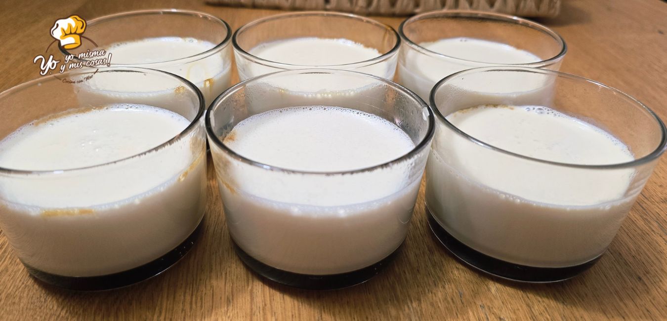 4- Caramelizamos los recipientes que vayais a usar y vertemos la mezcla de la panna cotta sobre ellos.