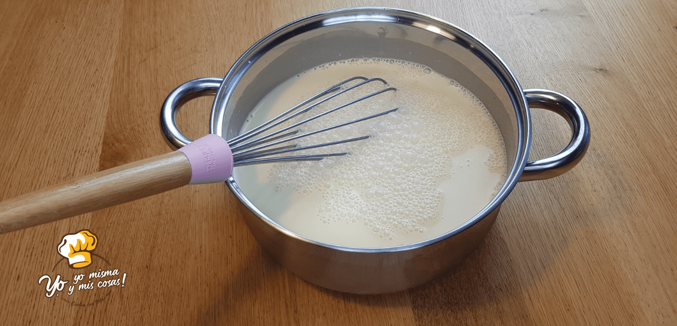 Mezclamos con unas varillas hasta disolver la maicena casi por completo.