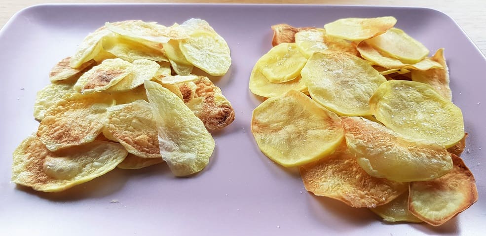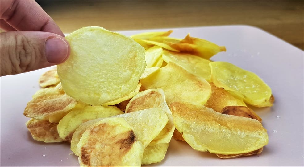 Hoy os preparo esta rica receta de patatas fritas como las de bolsa sin grasas añadidas. Ademas de dos formas diferentes.