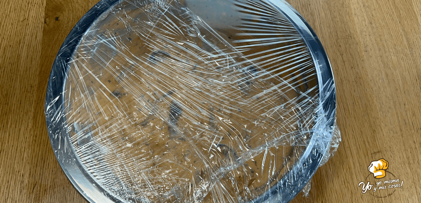 Mezclamos todo, tapamos el recipiente con film transparente o con tapadera y llevamos a la nevera para que reposo 30 minutos. En la parte que no congela.