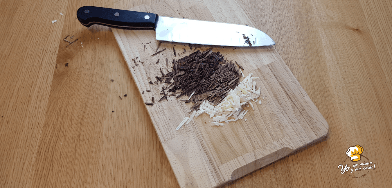Por ultimo troceamos chocolate. Le voy a poner de los tres tipos de chocolate. La cantidad os la dejo al gusto.