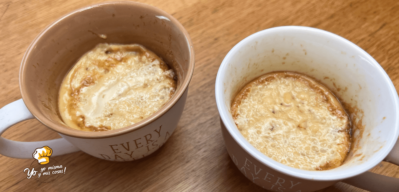 Si por algún motivo al sacar del microondas no estuvieran los flanes hechos, volver a introducir un minuto mas. Puede pasar esto si le dais mas grosor al flan, si hacéis toda la cantidad en una taza de desayuno mas grande en vez de taza de café.