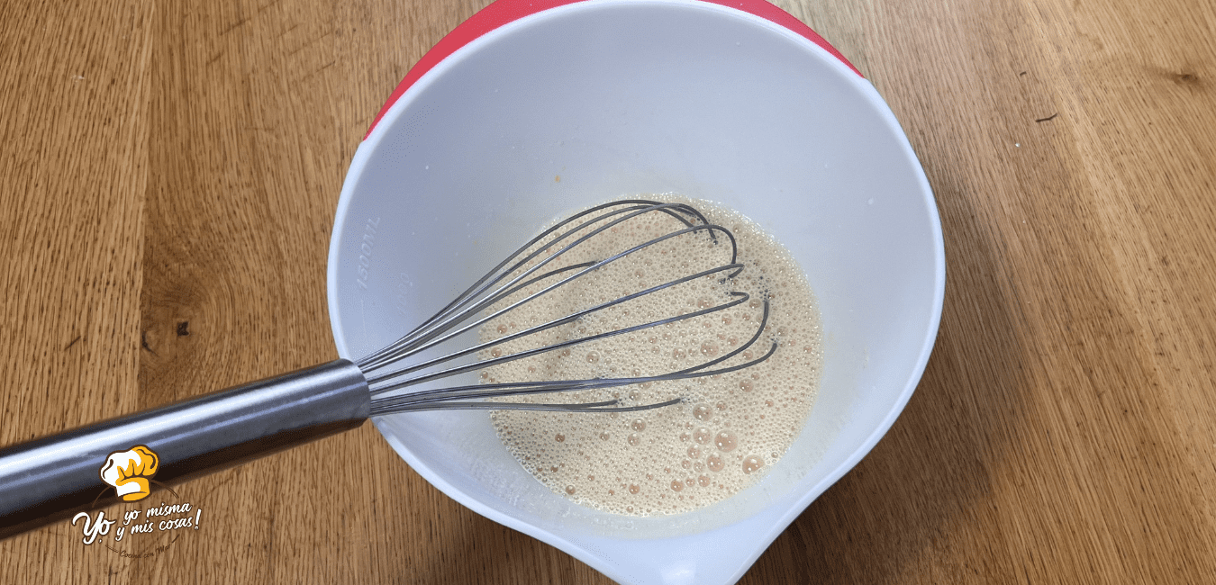 En un recipiente echamos el huevo y el azúcar, mezclamos un poco con las varillas manuales.