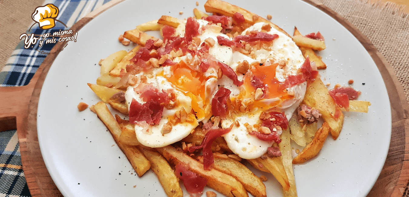 Aqui os dejo los ingredientes y su elaboración al completo. Vamos a la cocina a preparar esta receta de huevos rotos con jamón y foie.