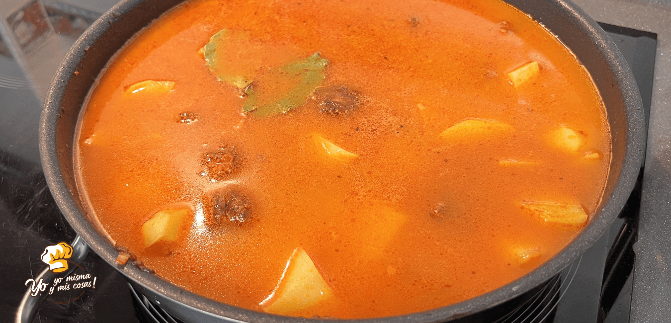 Bajamos el fuego al numero 5, fuego medio bajo. Ahí lo cocinamos el guiso.
