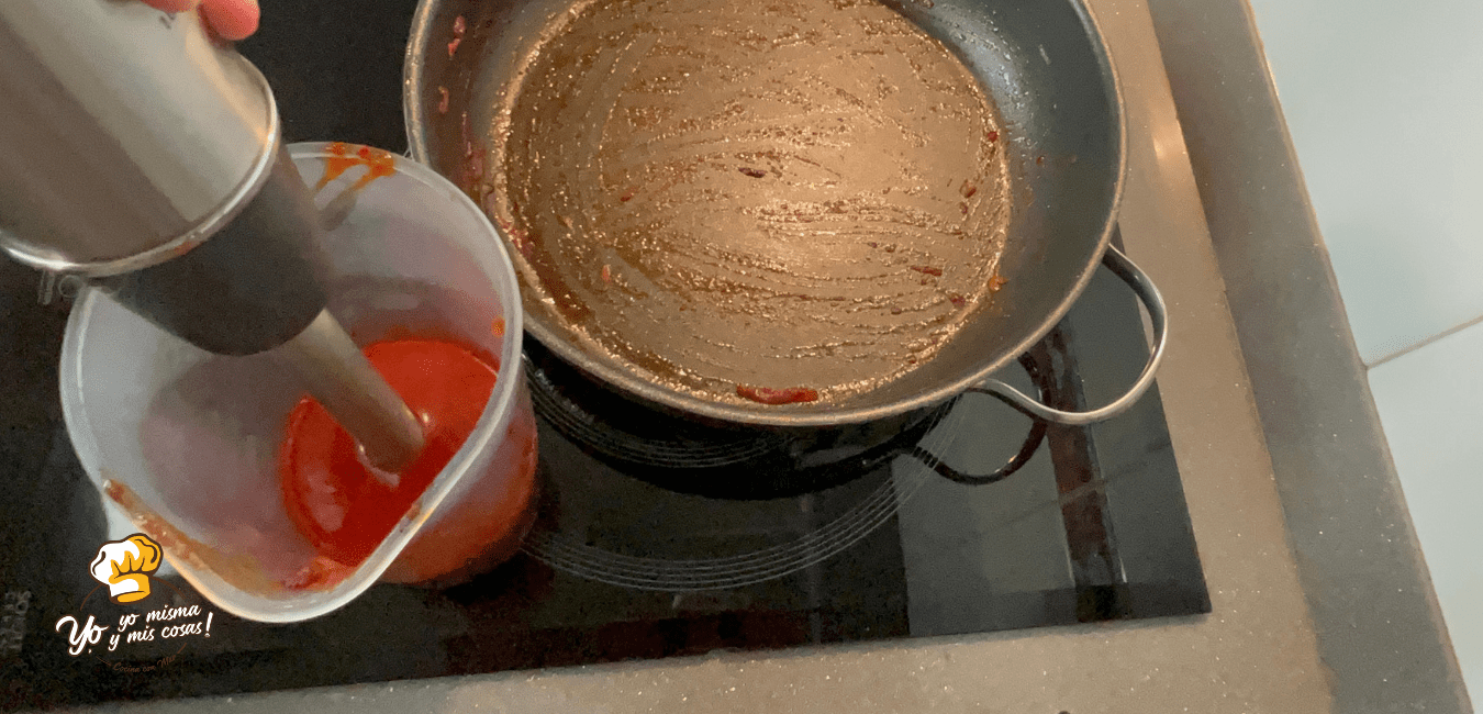 La grasa que nos quedo en la sartén, vamos a retirar casi toda. Solo dejamos en la sartén unas 4 cucharadas.