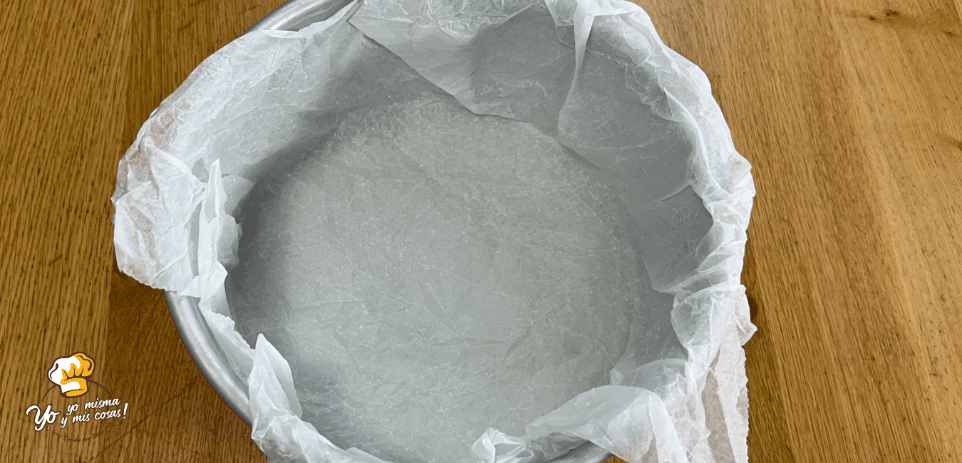 Voy a usar un molde redondo metálico de 20 cm de diámetro por 10 cm de alto. Le voy a poner un papel de horno adaptado.