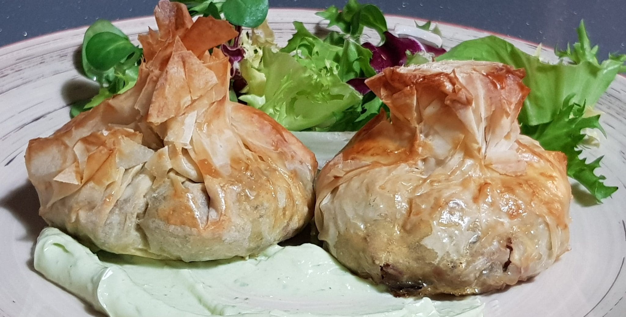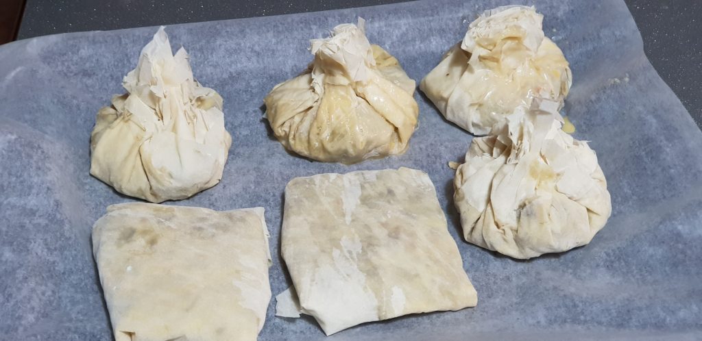 Es una receta muy simple y el relleno que llevan estos saquitos es una delicia. Yo estuve tentada a comernos solo el relleno y listo. Pero tenía la masa filo ya comprada y tenía que usarla. Y me alegro, el crujiente de la masa en el horno junto con el sabor del relleno me gustó muchísimo.