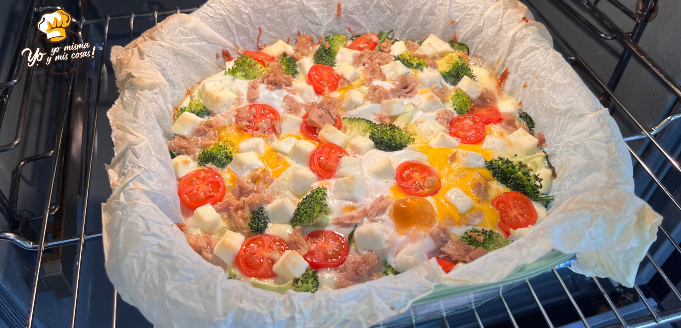 Echamos los huevos, el brócoli en trozos mas pequeños, el atún desmigado y sin el aceite, los tomates cherry cortados por la mitad.