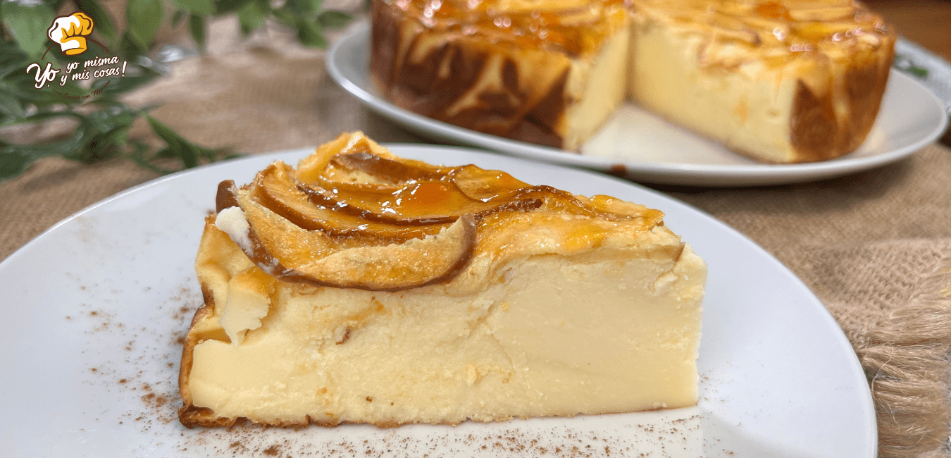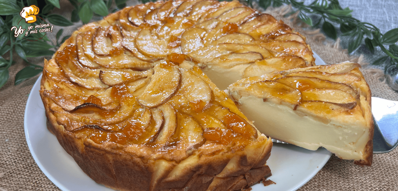 Si quieres triunfar con un postre vistoso, rico, con textura firme pero cremoso… Esta tarta de manzana y queso es perfecta.