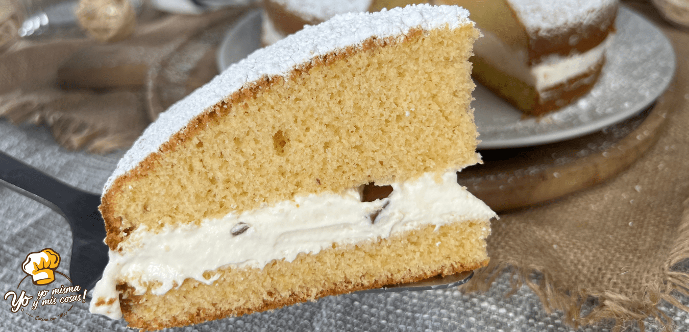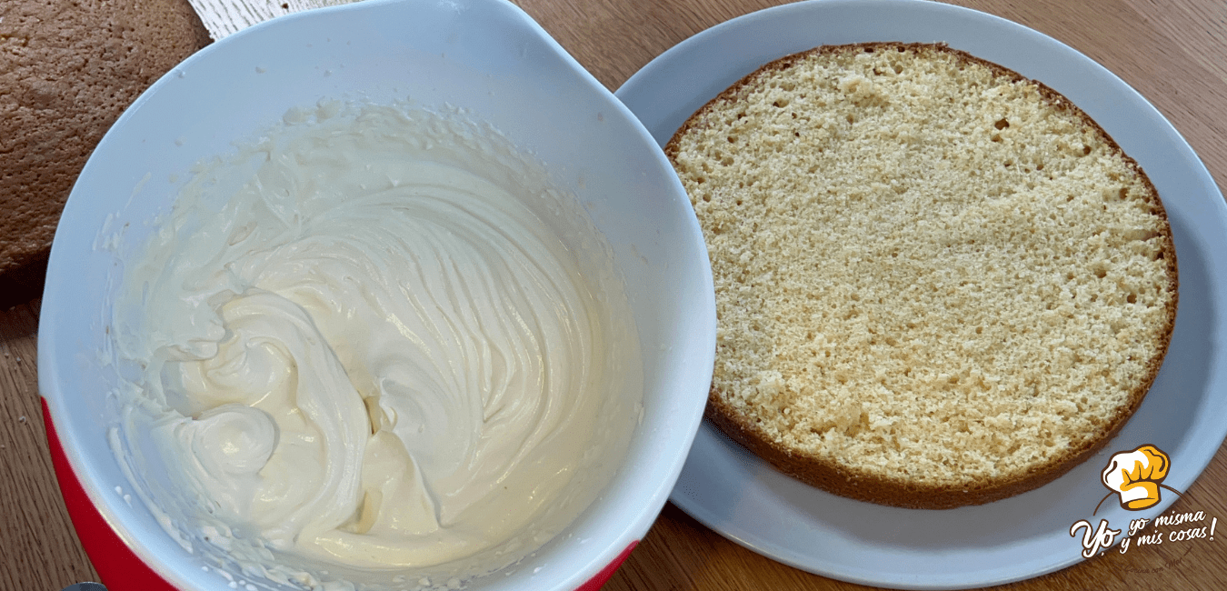 Queda un bizcocho esponjoso y tierno, sin medidas. La crema suave y deliciosa. Y en conjunto es una ricura.