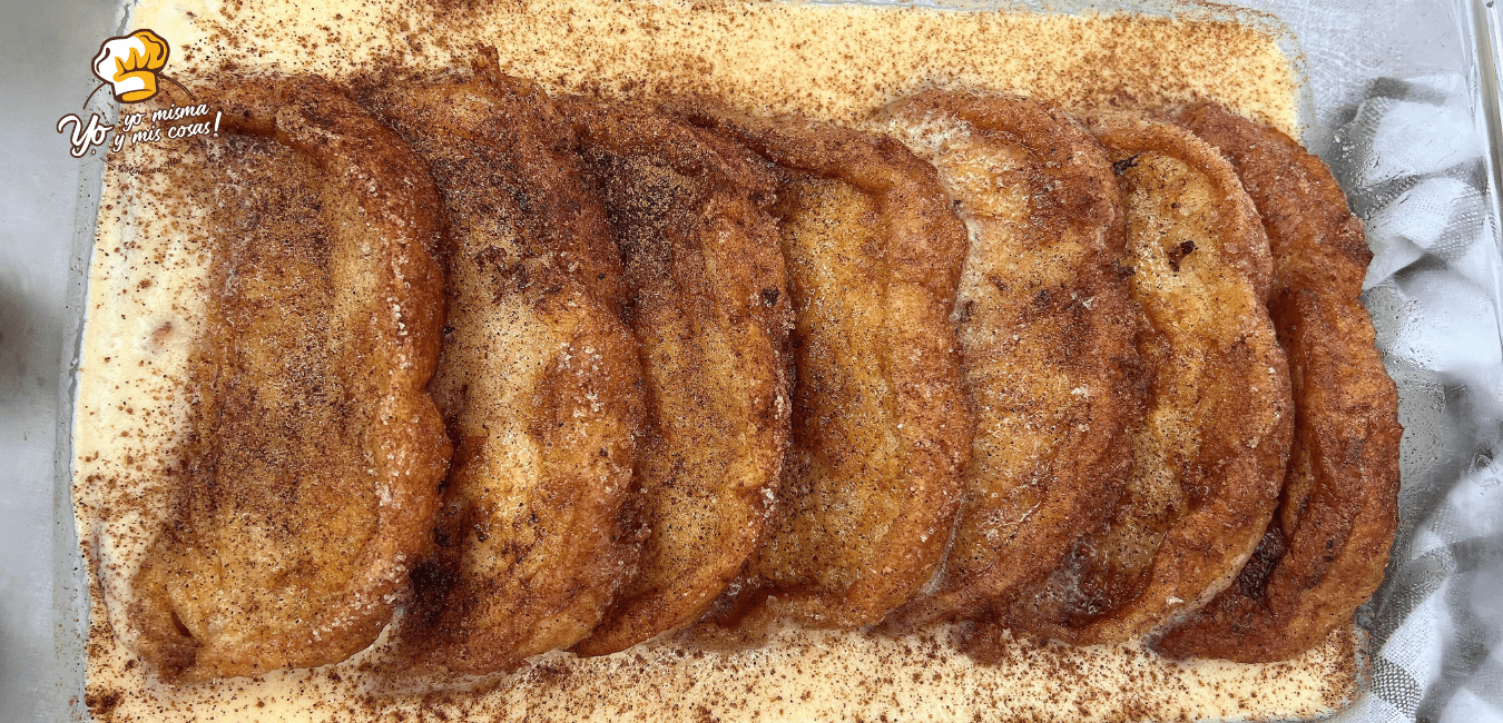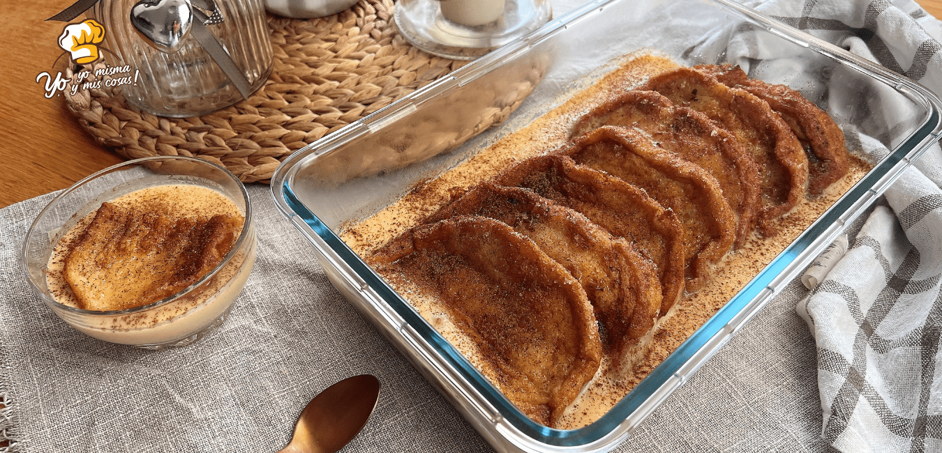 Vamos a la cocina a preparar esta ricura de receta de torrijas con natillas.