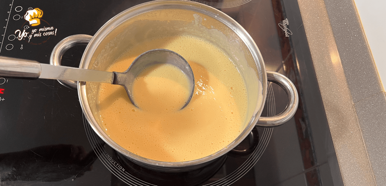 En ese momento notareis que la leche tomo cuerpo, peso, aun liquida. Esa es la textura que buscamos para unas natillas cremosas.