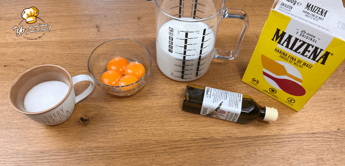 En un cazo vamos a echar las yemas, el azúcar, la leche y el aroma de vainilla. Mezclamos muy bien.