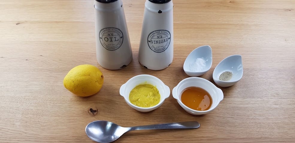 Aqui os dejo los ingredientes y su elaboración al completo. Vamos a la cocina a preparar esta rica receta de vinagreta de miel y mostaza para ensalada