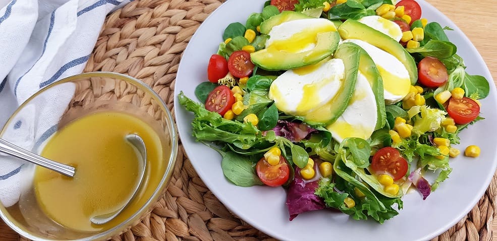 Y listo, ya la tenemos preparada la vinagreta de miel y mostaza. Si la vamos a usar al momento, echamos sobre la ensalada la cantidad que mas nos guste.